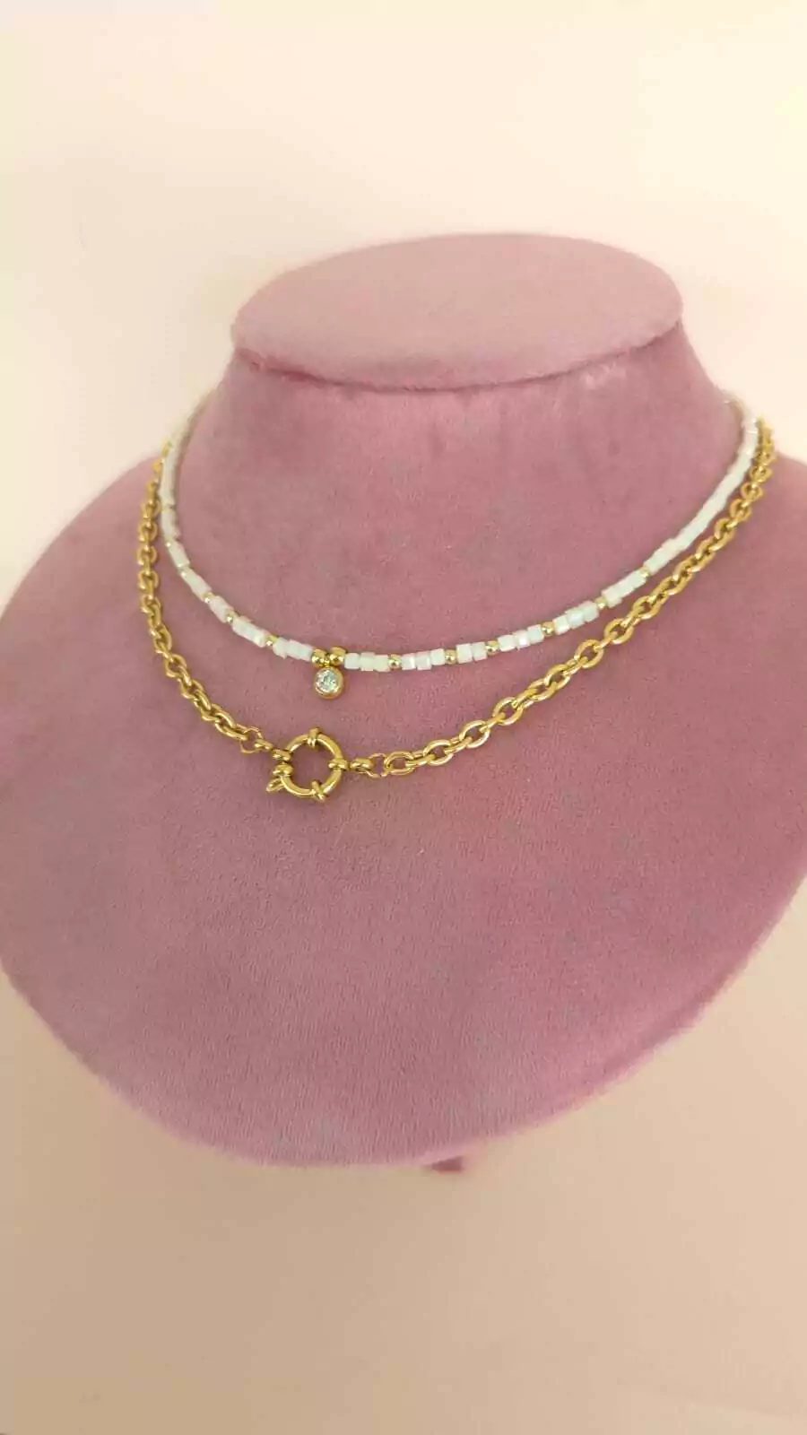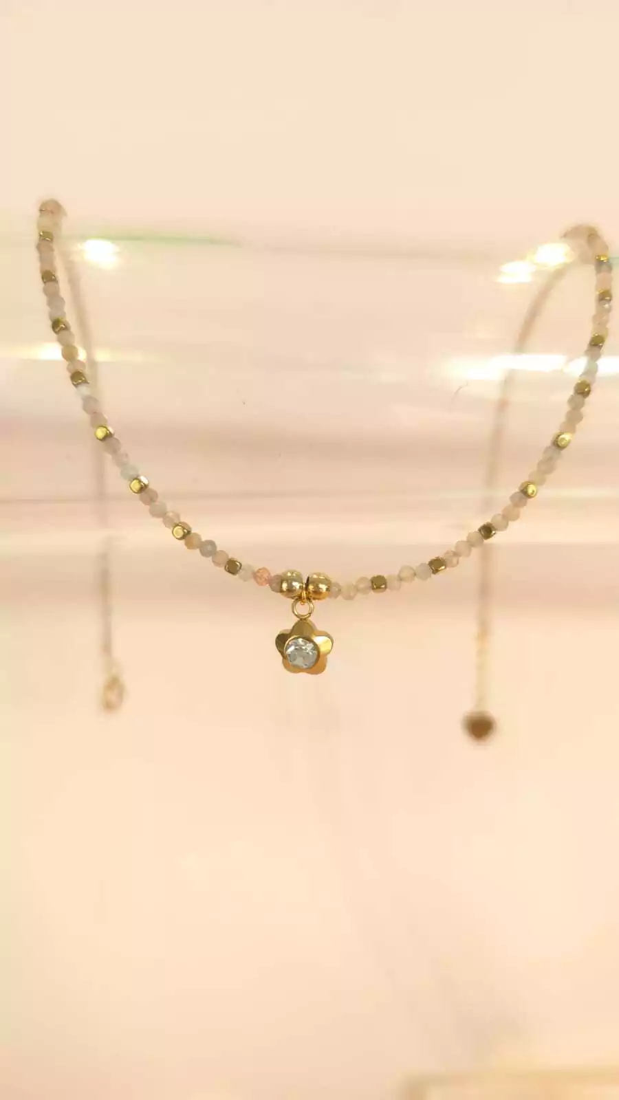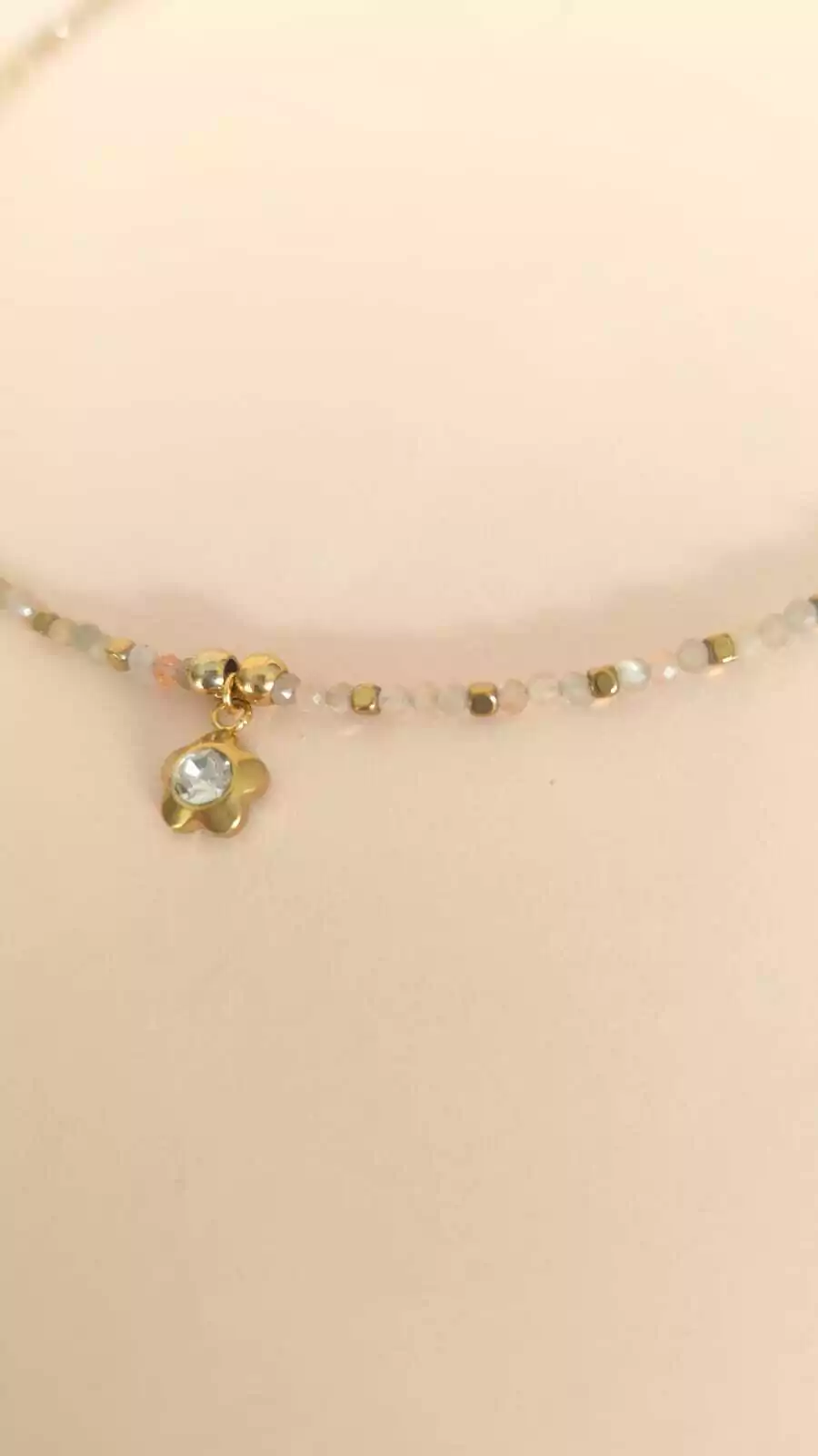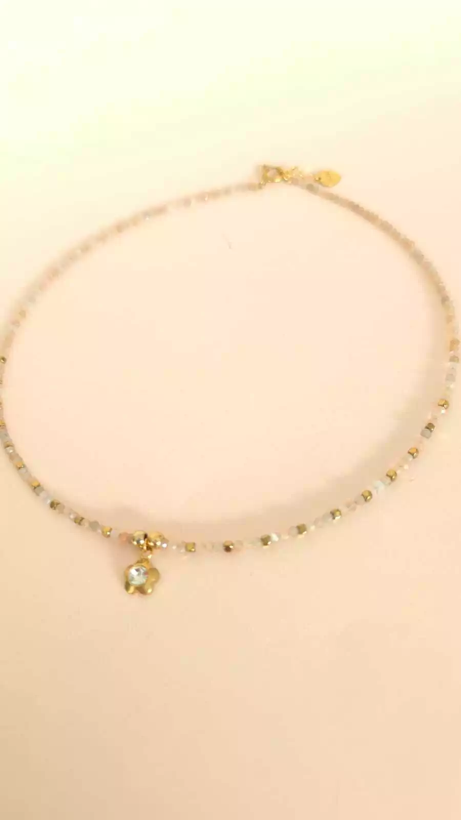 Collar hecho a mano de piedra natural y acero dorado lo que lo hace Waterproof e Hipoalergénico.