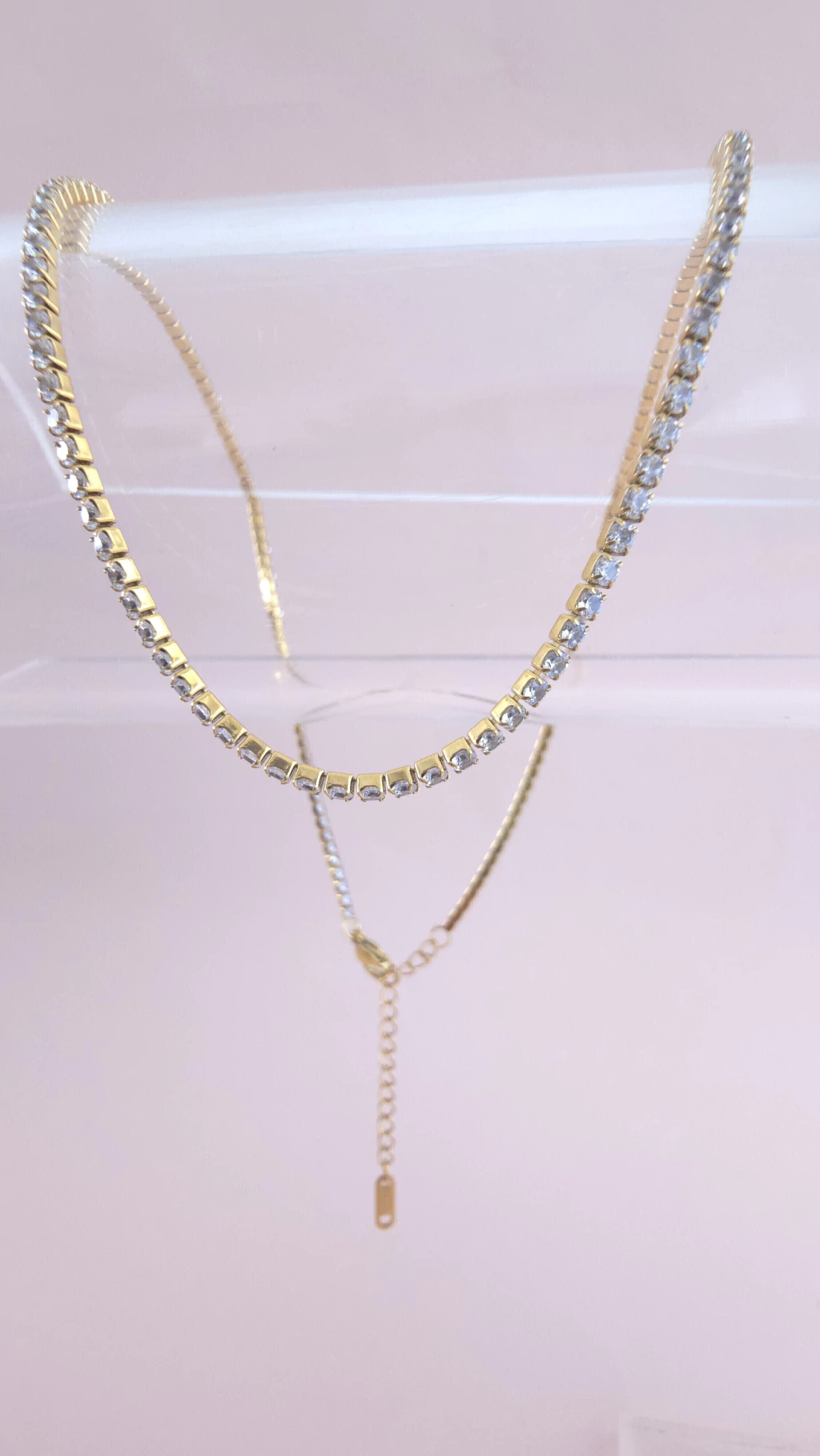 Collar zircón de acero dorado de alta calidad, hipoalergénico y resistente al agua.